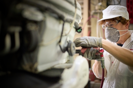 また、板金塗装は軽自動車から大型特殊車輛に至るまで、全ての車輛に対応する部門です。繊細で高品質を要求される乗用車の板金/塗装と、大面積塗布を必要とする大型車輛の塗装の技術を両立させています。